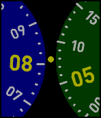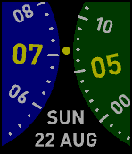 Hour & Minutes rotate opposite each other. Colors & date display is configurable.