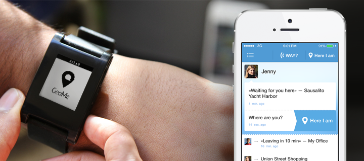 GeoMe on Pebble will let you share your location with friends or relatives instantly from your watch. There is no need to get your phone out if someone asks where you are! If you are new to GeoMe we suggest starting with the iOS or Android version of the app. GeoMe provides confidential location swapping, meaning that only you and your friend/relative will know where you are at any given time.