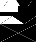This watch face uses geometric objects to tell the time. The first row is 3 hr increments, the left box in the second row adds 1 hr, the right adds 2 hrs. Then row of triangles are 10 minute increments. The bottom square is the final digit of minute represented using binary. The left triangle is 1 minute, the top 2, the bottom 4, and the right 8. Adding all areas gives you the time.