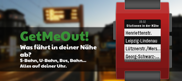 Get Me Out zeigt dir alle Abfahrten in deiner Umgebung. Egal ob Bus, Tram, S- oder U-Bahn, RE oder sogar ICE. Und das beste daran: du musst nichts eingeben. Alle erforderlichen Informationen wie Standort und Uhrzeit kennt deine Pebble ja schon.