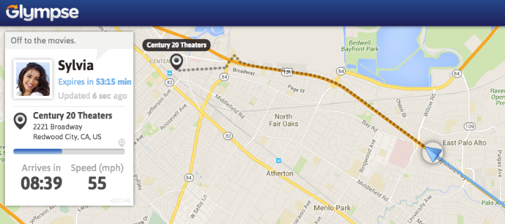 Glympse is the easiest way to safely share your location with someone in real time. Recipients receive a link allowing them to view your ETA and location in real-time for the length of time you choose. When the timer on your Glympse expires, your location is no longer visible. Best of all, recipients can view your Glympse on any device with a browser.