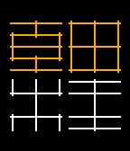 Summary: Mirrored digits look complicated but aren't. Readability: medium Examples: 04:36, 12:59, 18:25, 20:47 I mirrored the four classical digits twice, once horizontally and then once vertically. The resulting digits are point symmetric and look like glyphs from an unknown language. Sometimes they resemble Chinese. There are actually four ways to mirror the digits that result in symmetric digits. The reading rule is: concentrate on one of the 4 corners of each glyph depending on the watchface name. TL means top left, TR means top right, BL means bottom left and BR means bottom right. There you will find the well known number within the glyph. Once you know the trick, it's actually pretty easy. Design / Programming / Copyright © 2012, 2015 Sam Jerichow