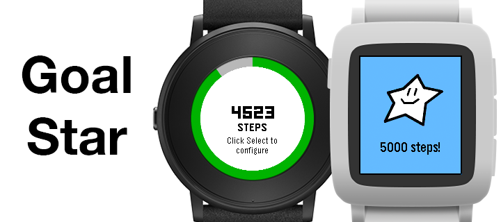 A simple Pebble app that lets you set a daily health goal and get notified with vibrations and a popup when you reach it. Goal Star runs in the background so you can get notified even if you're not in the app. The app includes configuration options for: * Goal type (steps or distance in meters) * Goal value * Popup window timeout * Show time on progress window Supports Pebble Time, Pebble Time Steel, and Pebble Time Round watches. Icon based on "achievement.svg" by romzicon from The Noun Project.