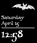 An homage to Edward Gorey (code gratefully borrowed from Pebble's Simplicity watchface). Font based on Edward Gorey's own hand lettered books. Bat based on one of his bats from "Edward Gorey's Dracula"