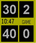 Tennis Score is a simple and easy to read tennis scoring app. It includes game and tie-break modes. Large numbers for easy reading. Use up and down buttons to add points. The center button has multiple functions: 1. Short press - undo last added point 2. Long press - reset all scores to zero 3. Long press - when scores are all zero, switch between normal and tie-break mode.