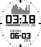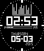 Square font watchface with top graph. 12h/24h Invertable Bluetooth signal loss indicator Battery level & Charging indicator Date formats DD-MM or MM-DD. Selectable Graph Update Periods (None, 1 sec, 5 sec, 10 sec, 30 sec, 1 min) There is a graph at the top is currently not bound to any sensor or other data. Feel free to suggest features.
