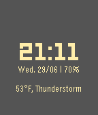Text color and background color depend of the weather. When the sun shines, the text is yellow and the back is blue. When it's raining, the text is white and the back is gray, ... It's my first app and if you've got some cool ideas, i'll add them into this app