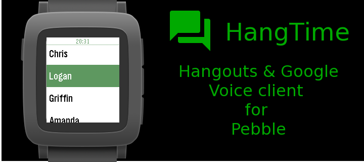 $3 (Powered by KiezelPay) 2 hour trial period HangTime is the first Hangouts/Google Voice client for Pebble! Allows you to send canned or voice messages like the Send Text app. Login with your Google account and send away. If you like HangTime give it a heart.