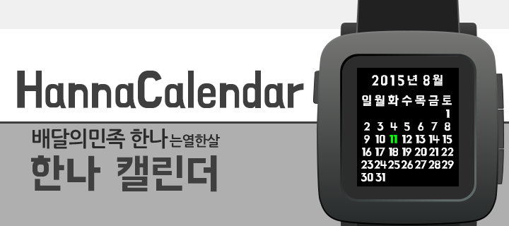 Simple Watch-app using Hanna font for Pebble Time - Up and Down button for change Calendar - Select button for this month