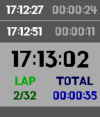 # HannaTimer simple stopwatch for time-flow event. this app has two mode, that remember previous mode. change mode `long up click` action. ## LAP TIMER - time with interval(gap) each stopwatch laps - retrieve past stopwatch point (marker) ## STOP TIMER - simply 5 stop timer ## Usage ### lap timer - up/down : move focus - select : mark time now - long select : remove this lap (short vibe feedback, very short vibe feedback if failed) - long down : clear all laps ### stop timer - up/down : move focus - select : start or pause - long select : reset this timer - long down : reset all timers