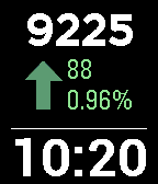 A big and clear watchface to show your current step count and whether you are more active than yesterday! Try to keep an up arrow throughout the whole day! It's fun and it's motivating to be active. For example, if you current step count is 9225 at 10:20pm today and your yesterday step count was 9137 at the same time yesterday, you would see an up arrow with a positive change of 88. However, once you stop being active, you may turn to a down arrow later in the day.