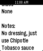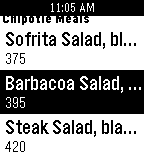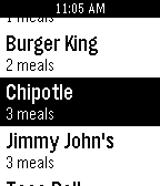 Helps you find meals for less than 600 calories (mostly) from commonly available restaurant chains (mostly fast food). Most are less than 500 calories. NOTE: I HATE bell peppers so any meal that includes them has a note to take them off so I don't forget:) Feel free to ignore those!