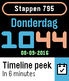 Clear watchface with Activity display and Heartrate monitor (on Pebble 2 only!). Supports English, Dutch, German, French, Spanish and Italian. Colors fully configurable. Battery load warning on 50 and 20 percent load with change of background color. BT con warning with optional buzz. QuickView enabled. US/European date format support. Battery friendly. Just $1.99. Now includes display of walked distance, calories burned and sleepdata.