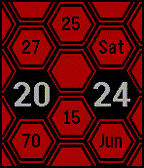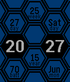 Display the time and battery status on an hexagonal grid, where colors changes every minute.