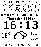 Hourly forecast 2 is a UI remix from Hourly forecast! It is designed for daylong outdoor activities like Randonneuring! Features: -Shows temperatures, conditions, wind speeds and directions in coming 6 hours. -Current temperature, relative humidity, wind speed and gust wind info and condition. -Current location and updated time. -Cached data for 36hrs, no need to wait for loading every time! -Black or white colour schemes! Thanks for: https://github.com/erikflowers/weather-icons for nice icon! https://github.com/cynorg/PebbleTimely for nice example how to create an informative watch face! TTF editor for icon font: https://icomoon.io GIF editor for screenshots: http://gifmaker.me/