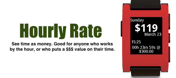 See time as money. Good for anyone who works by the hour, or who puts a $$$ value on their time. Great for attorneys, consultants, et al. Configurable hourly rate with a start / stop timer. Shake wrist to toggle between seeing hours or dollar value as main display. Works with iOS and Android.