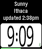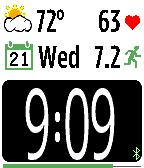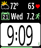 This watchface shows your vital fitness and weather information in big easy-to-read text. It is the companion watchface for HR Stopwatch. Displays heartrate, steps, and weather on main screen. Tap to show fitness information of distance, calories, active and sleep times. Tap again for humidity, air pressure, wind, and cloud coverage. Tap again for a weather description and last update time. Want more? Create timeline pins for forecast information. Daily pins will be created for the next three days. There are a dozen custom settings for units, screen inversion, battery display, etc. Heartrate display requires a heartrate monitor device, such as the Pebble 2 or the TYLT VÜ Pulse smartstrap.