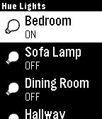 Control your Philips Hue light bulbs. Initial Setup - Press select to discover bridge and begin pairing process. Controlling Light Bulbs - Press select to switch on/off - Long press select to adjust brightness levels