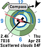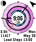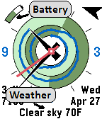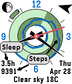Analog / Digital combination watch. ILuvChrono shows sunrise & sunset, also weather, health (charted steps & sleep), and hours slept. It includes a compass too. Because of the animated nature of this watch, the display is optimized to increase battery life. ILuvChrono is powered by KiezelPay.
