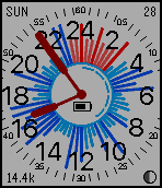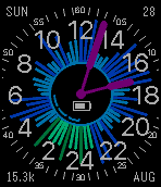 Analog watchface showing the last 24 hours of activity and sleep time in a radial fashion that somehow resembles an eye iris. Highly configurable with complications and custom colors. Available complications include battery level, moon phase and daily health goal. Enjoy! Made with ♥ in Italy