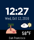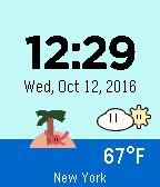 The Island Crab is back! This time he’s ready for 4.0 with fun features and powerful performance. • 12 or 24-hour time based on Pebble settings • Day and Night Modes • Hourly weather updates from OpenWeather.org o Manually refresh the weather by navigating to another screen and back • The Bluetooth monitor will show “Disconnected” when the connection is lost. • The island is a battery meter! It will sink as your battery gets low. If you see your crab in the water, give it a charge to get your island back. • Settings page will allow you to change temperature, set manual location for weather, and day color mode. After you save, just navigate to another screen and back to see the change. One-Time cost of $0.99 + local taxes after 7 day trial. Your contribution will help fund my education (ʘ‿ʘ)