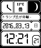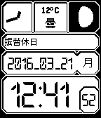 It is a simple digital clock. Japan's national holiday law supports. 国民の祝日に関する法律に基づいて、祝日を表示します。振替休日もサポートします。 月齢を計算し、満ち欠けを表示します。 天候を表示します。 GoogleNewsのトピックを表示します。
