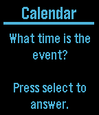 A Voice Assistant for Pebble Time I can help you in the following ways: Add an alarm to your phone Launch an app on your phone Add an event to Calendar Search Contacts and return email and phone number Send text message by contact name Play music Start navigation to a given address Return temperature with high and low for a time and/or place Return travel time from current location to a given address Return when the next episode of a TV show will be on Tweet Query Wolfram Alpha Check sports scores