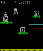 A Jetpac inspired watchface for Pebble Time! Watch Jetman fly around with his trusty Jetpac. He's forever looking for the correct rocket parts to blast off to a new planet just like the one he's already on. Every minute Jetman will destoy rocket parts that he doesn't like. Every hour, he'll build his rocket and blast off. Jetpac Time is battery friendly. After two minutes Jetman will stop flying around, and only shoot numbers when they should change. After ten minutes, he'll go to sleep and the digits will change on their own. However, hourly animations will still run. You can wake jetman by tapping your pebble. The number of lives remaining is your Pebble's battery status. Jetpac Time is inspired by the Ultimate Play the Game's classic ZX Spectrum Jetpac game from 1983.