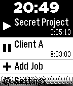 Log your time spent on different projects or activities. Helps you complete your timesheet at the end of the week, or just see where the time went! Only one timer runs at a time, so as soon as you start one job, all the other jobs are automatically paused - you can only do one thing at a time! Features: * Unlimited projects/jobs/activities * Day unit is customisable (eg, 8 hrs, 24 hours, or however long your working day is). * Move active timer to the top of the list (optional) so the most common tasks automatically move near the top. * Display current time above the list of jobs (optional).