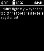 A watchface that displays a new joke every minute. Set it as primary watchface and in a single quick glance the time, battery status and connection info (and tops off with a joke) or have it waiting in case you feel the need for a laugh. Never again have nothing to say during a painfull silence or are bored in a loooong meeting. Now with 100+ jokes! Also check the version with NL jokes...