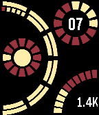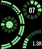 Time is displayed on the left side of watchface. Big arc displays minutes, large segments equals 5 minutes. Minutes continue from top to bottom on outer arc for mintues 1 through 30 and bottom to top for minutes 31 through 59. Smaller circle indicates hour. Example: 9:33 Inner circle indicates bluetooth connection. Vibrates on connect/disconnect. Upper-right circle indicates date. Outer circle for month, inner digits for date. Example: 5 April Bottom-right arc indicates battery level. Example: 80%. Inside arc, step counter displayed per thousands of steps. Color scheme is now customizable via configuration screen.
