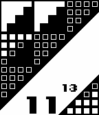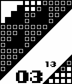 Hour is at bottom center of screen (supports 24-hour format). Minutes are read in upper-left corner. Each full triangle represents 10 minutes, each filled square 1 minute. Month date to the upper right of hour. Lower-right corner represents battery level. Black square in lower-left corner will display on Bluetooth disconnect. Vibrates on Bluetooth connect/disconnect.