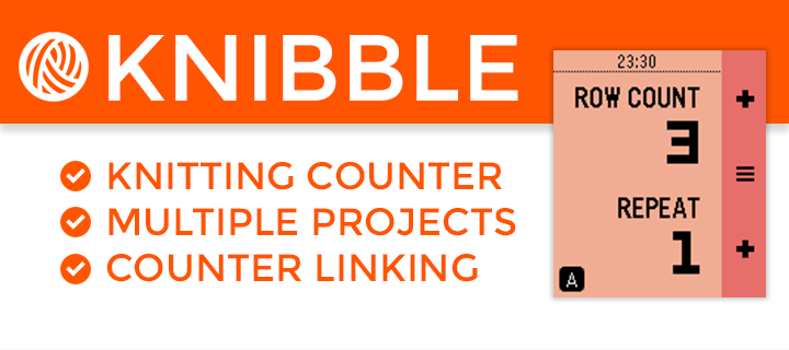 NiftyKnit is reborn as Knibble! Keep track of your knitting row and repeat counts from the convenience of your wrist. Knibble even remembers where you left off--the counters are always saved to your Pebble! Coming soon: - Custom project names - Spanish translation I would love to hear suggestions for additional features. Just shoot me an email!