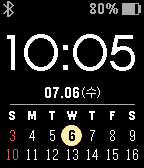 Pebble Round 22-line calendar with korean holidays. 하단에 2주 달력을 표시합니다. 이 달력에는 한국 휴일을 표시하도록 하였습니다.