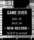You're trapped in a hostile facility overrun by alien creatures. Move through the corridors, find and shoot every enemy before they reach you. Survive long enough to clear the level. Controls: up to turn left, down to turn right, middle button to move forward. Press both side buttons at the same time to shoot. Collect medkits to restore health. Your kill count is tracked, try to beat your best score. That's it. No story, no cutscenes, just you and whatever's coming around the corner.