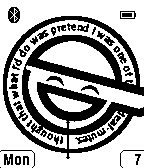 The Laughing Man logo from Ghost in the Shell (GitS), analog watchface. The spinning words are the minute hand, and the ballcap is the hour hand. Copyright owned by ProductionIG permits personal non-commercial download and use: http://www.productionig.com/contents/footer/01_/index.html