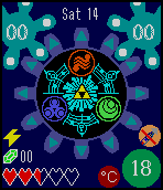 Watchface inspired by the Gate of Time that appears on the game The Legend of Zelda: Skyward Sword. The amount of details is limited due to resolution restrictions. - You can configure how often the gears rotate*. - Hours and minutes are shown on the left and right gears respectively. - Rupee counter indicates seconds or day of year*. - Hearts indicate the amount of battery left. - Navi is there to keep you company. She gets replaced by a small bolt while charging. - Bluetooth status is indicated with the hookshot (since it hooks to your phone). It gets crossed when no BT connection is present. - Temperature is shown on the lower right and updated when you open the watchface** as well as approximately every hour. You can toggle between Celsius and Fahrenheit within the Pebble app*. - Weekday and Monthday are shown on top by default, you can shake your wrist to briefly look at Month and Year, although if you shake* too hard the gears might have to readjust themselves ;-) If you set the gears' rotation to off or 1/minute AND the rupee counter to day of year, the screen will only be updated once every minute. *Note that due to the way Pebble configuration works, you will need to have an internet connection active on your phone in order to access the watchface options. ** Weather updates are done on the minute mark, it may take a couple of minutes to load.