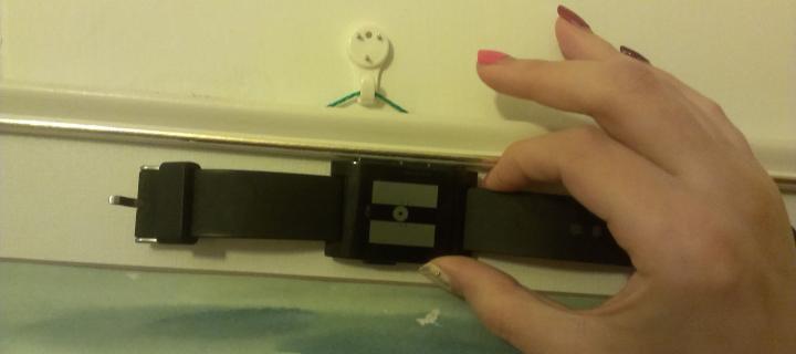 Horizon level measuring tool. Put off your pebble and align with object - it will bring on light if object is horizontal. Tolerance is adjustable by UP/DOWN buttons
