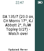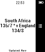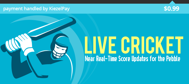 ***NEW VERSION!*** Live Cricket V2 is a major re-write of the entire user interface of Live Cricket to work on all current Pebble Platforms. Live Cricket is no longer free, a one time purchase using KiezelPay at a low $0.99 is required to continue using Live Cricket after the 3 day free trial has elapsed. This has become necessary to support development and server costs. New Features include: Brand New UI Support for Pebble Time, Pebble Time Steel and Pebble Time Round Bluetooth disconnection notification, click vibrations, improved readability and so so much more! -------------------------- Live Cricket is a live Cricket Match / Score tracking application. Use this Pebble WatchApp to find the cricket match you are interested in and then monitor the scores in near-realtime. Features include: Match Overview and Details (overs, bowler, batsman) etc. New Multi Screen Layout to improve readibility Matches including all international 1-day, 5-days and T20 and many local matches 10 score history "Haptic" vibrations on button clicks Short vibration to alert you to each time the score changes