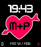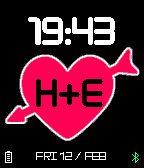 Do you love somebody? Let the world know! You can set the initials in the heart and choose to display battery level and/or bluetooth connection.