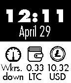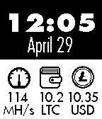 A status animated watchface that gives at glance your ltcrabbit.com stats like your total hashrate, balance and value of a LTC. Works with your account's API key. You can tap to update! Please email me if you found a bug or have a suggestion! Donations: Lb6zs2uhYai2ygfpoRYt5E9dEopJmMdVPy Update 2.2.3: Fixed endless loading on Android and migrated to SDK 2.1.