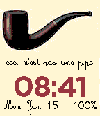Have you ever been asked if your Pebble Time is a smartwatch manufactured by another famous company? The answer is in this watch face, inspired by René Magritte, "ceci n'est pas une pipe" (this is not a pipe)... "et pas une apple watch" when you shake your wrist!