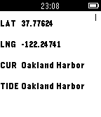 Pebble Marine provides useful instrumentation while sailing, windsurfing, kayaking, paddle boarding, or boating. Your Pebble watch displays speed (knots), bearing (degrees), current speed (knots), current bearing (degrees), and tides (minutes to change). Pebble Marine fetches up-to-date current and tidal data from the nearest NOAA weather stations.