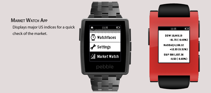 Pebble Round 2Displays latest Dow, NASDAQ and S&P 500 info.
