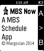 The nonofficial MBS Companion app for Pebble! Contains the A and B week schedule for Upper School only. Please contact me if you have any ideas for improvements!