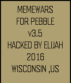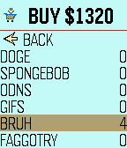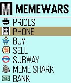 This is a sort of "hack" of Drug Wars for pebble. ABSOLUTELY ALL CREDIT GOES TO ACLYMER HE CREATED THIS GAME. IM JUST TRYING TO HAVE SOME FUN WITH IT. Your job is to sell and buy memes so that you can pay off your debt to the Meme Shark. Look out for Haters! Try to get some services, e.g. IFunny, Google+, Facebook. This will allow to fight the haters. P.s. ODNS is One Does Not Simply, and faggotry is the "cease your faggotry" memes.