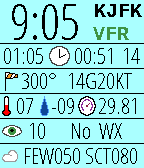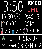 At-a-glance aviation weather on your wrist made by a pilot for pilots. This open-source watchface organizes and displays the METAR report for your favorite or nearest airport. Unlike some watchfaces which only display the raw text, we make sense of the data. This allows us to better arrange your report and even determine the current Flight Rules. Know immediately when your favorite airport is under VFR, MVFR, IFR, or LIFR. Header: Local time (12 or 24), ICAO station ID, Flight rules Row1: Current Zulu time, Issue time, Minutes since issued Row2: Wind direction, Wind speed including gusts (KT/MPS) Row3: Temperature (C), Dewpoint (C), Altimeter (InHg/hPa) Row4: Visibility (SM/km), Other WX Codes (ex: -SN, NOSIG) Row5: Bottom two cloud layers (ex: OVC020) Background behind "minutes since issue" will be red if the last fetch was not successful. Updated 2016-10-31: New AVWX endpoint, new menu icons Note: METARs come in two variants: International and North American. Both variants use different units for visibility and altimeter. While the altimeter value is easy to tell apart, visibility is not. Though the unit is not displayed on screen, an altimeter around 1000 will always have vis reported by km, and an altimeter around 29.92 will always have vis reported by SM. Some stations report wind speed in MPS rather than KT, but these units will always be displayed on screen.