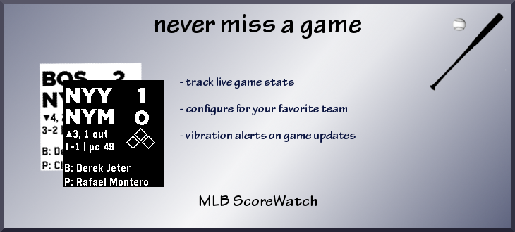 Keep up with your favorite MLB teams right on your wrist. Follow live baseball games. Bug reports or ideas to make it better? Let me know in the forum: http://forums.getpebble.com/discussion/13038