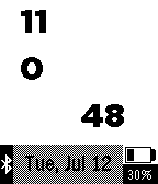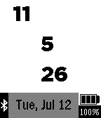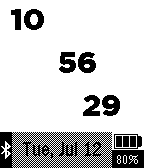 Modern-Watch-Face with hour, minute and seconds scrolling in three line. Additional information about date, bluetooth connection and battery level state.