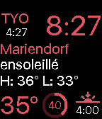 This is Modular Watch. Inspired by the Modular watchface of the Apple Watch. Choose between: - 17 different colors - or multicolor watchface - Celsius and Fahrenheit - 12/24h format - 5 languages - option to show weather details or big date - choose between small date and 2nd time Shows: - date / time - temperature - city / conditions / highest and lowest temperature - sunset time - battery - charging state - no phone state - 2nd time No further updates or support... I've sold my Pebble! Sorry.